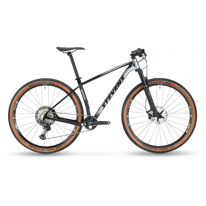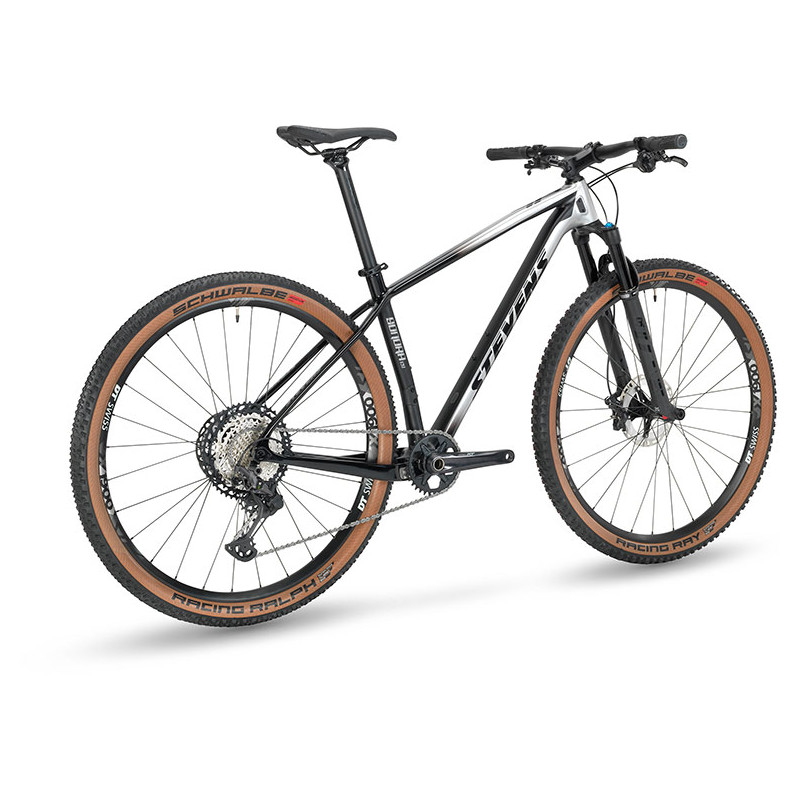 ... Quand STEVENS conçoit une machine de course sur roues 29" pour les marathoniens qui ont de l'ambition : un cadre carbone monocoque haute de gamme, associé à des composants qui fonctionneront parfaitement tout au long de la saison : de la transmission Shimano Deore XT 1 x 12 vitesses et des freins Ice-Tech aux roues DT Swiss.